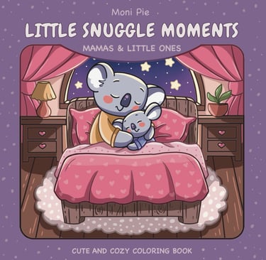 Step into a world of soft smiles, gentle hugs, and heartwarming animal families in Little Snuggle Moments : Mamas & Little Ones .This adult-friendly coloring book features 30 lovingly hand drawn scenes of adorable animal moms and their little ones sharing everyday joys—from bath time giggles to baking sweet treats. Each page is thoughtfully composed with bold, clean lines, medium detail, and large easy-to-color shapes that encourage relaxation without overwhelm. Designed for cozy evenings and simple creative time. This coloring book invites you to slow down, unwind, and color your way through tender motherhood memories in a charming kawaii animals world.